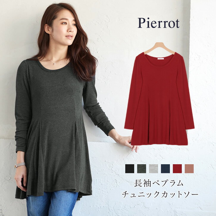 女性らしいラインが作れる! 無地カットソーダーツワンピース ダーツが立体的な女性らしいペプラム形のフォルムを作ってくれます。 生地をたっぷり使ったプリーツがキレイなフレアになって、 裾に向かって広がるAラインシルエットが気になる体型をカバーしてくれます。 ワンピースとしもチュニックとしても着られる丈感と重ね着できるシンプルデザインで着回しバツグン! デコルテをキレイにみせてくれる首周りは女性らしく上品に演出してくれます。 優しく伸びの良い生地感だからストレスレスな着心地です。